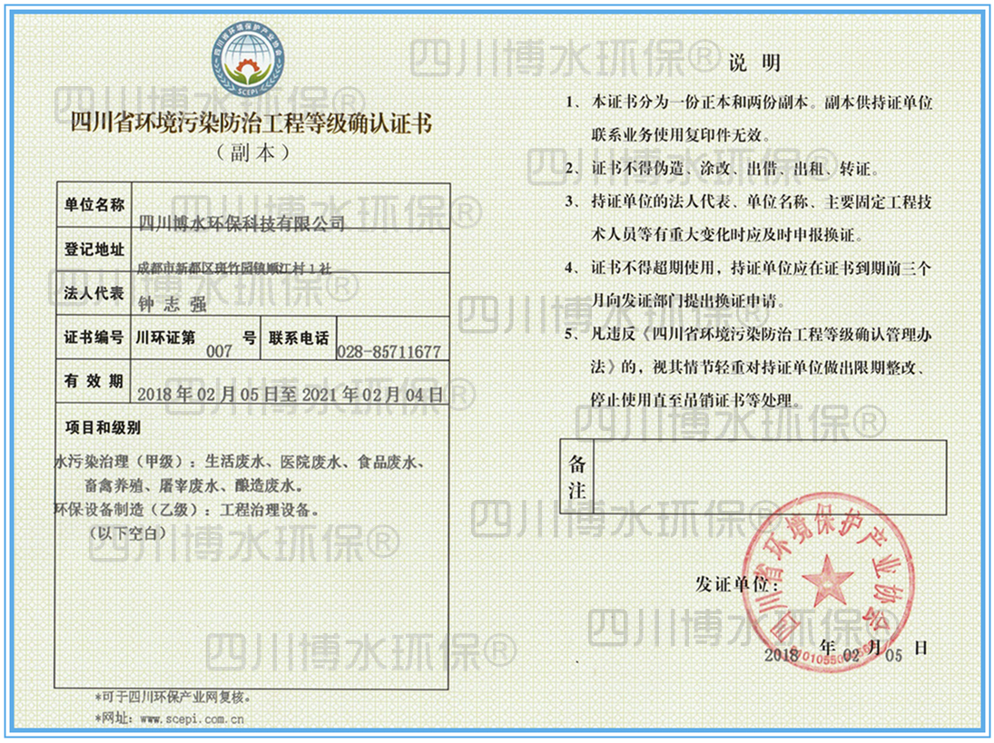 博水環(huán)保榮獲水污染處理甲級(jí)證書