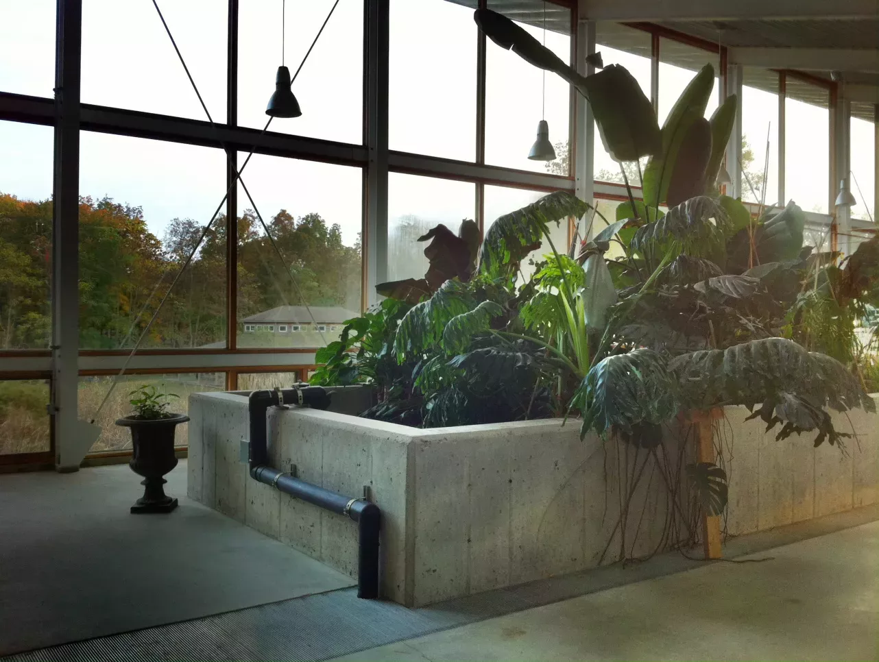 聽起來逼格很高?其實污水處理真沒有什么奧秘,其處理原理就很簡單。一開始,所有污物像人類排泄物和“灰水”例如廁所、洗手盆和淋浴等產(chǎn)生的廢水送入儲罐收集,然后輸送至生態(tài)機器。第二階段是用兩個18立方米的化糞池和缺氧池作為調(diào)節(jié)預(yù)處理,出入流水四個造濕地,內(nèi)襯橡膠,堆滿碎石,利用依附在植物根系上的生物膜對污水作進一步凈化。據(jù)說此時污染物去除已達(dá)75%。第三階段是好氧曝氣池,一個多級食物鏈的生態(tài)系統(tǒng),去除大部分的營養(yǎng)物。最后經(jīng)循環(huán)砂濾后,廢水就已經(jīng)變成符合標(biāo)準(zhǔn)的家庭用的清潔水源。這個生態(tài)機器是一個現(xiàn)代溫室構(gòu)造,太陽光伏板供電,里邊還能用作瑜伽課室。