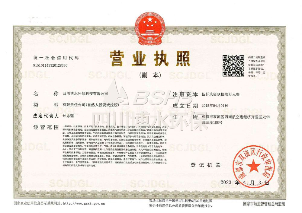 博水環(huán)保已成為四川省高新技術(shù)企業(yè)、四川省環(huán)保產(chǎn)業(yè)協(xié)會(huì)理事單位、中國(guó)環(huán)保產(chǎn)業(yè)協(xié)會(huì)會(huì)員,前后獲得70多項(xiàng)國(guó)家技術(shù)專(zhuān)利及軟件著作權(quán)、水污染治理甲級(jí)、環(huán)保設(shè)備制造甲級(jí)、污水處理設(shè)施運(yùn)維二級(jí)、市政工程總承包三級(jí)、環(huán)保工程三級(jí)、機(jī)電安裝工程三級(jí)等相關(guān)資質(zhì);通過(guò)了ISO9001/2015質(zhì)量/環(huán)境/健康、質(zhì)量服務(wù)AAA示范單位等體系認(rèn)證;