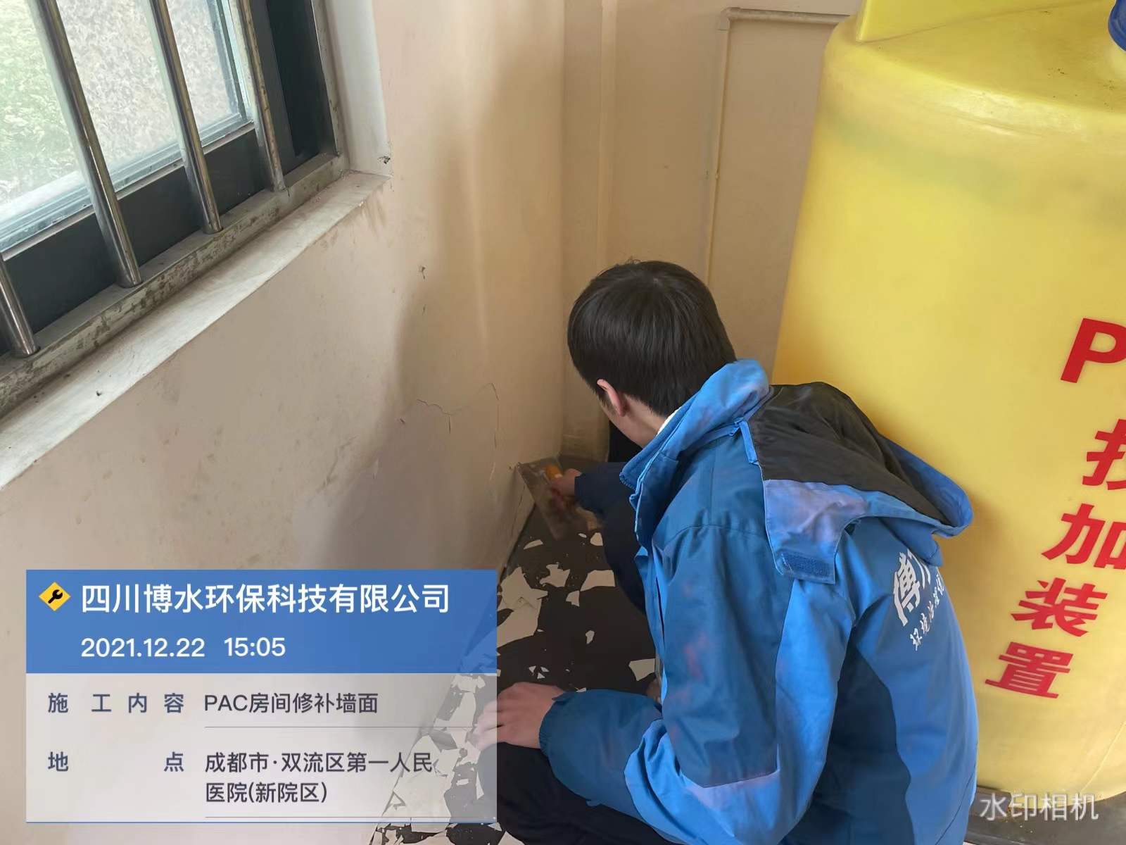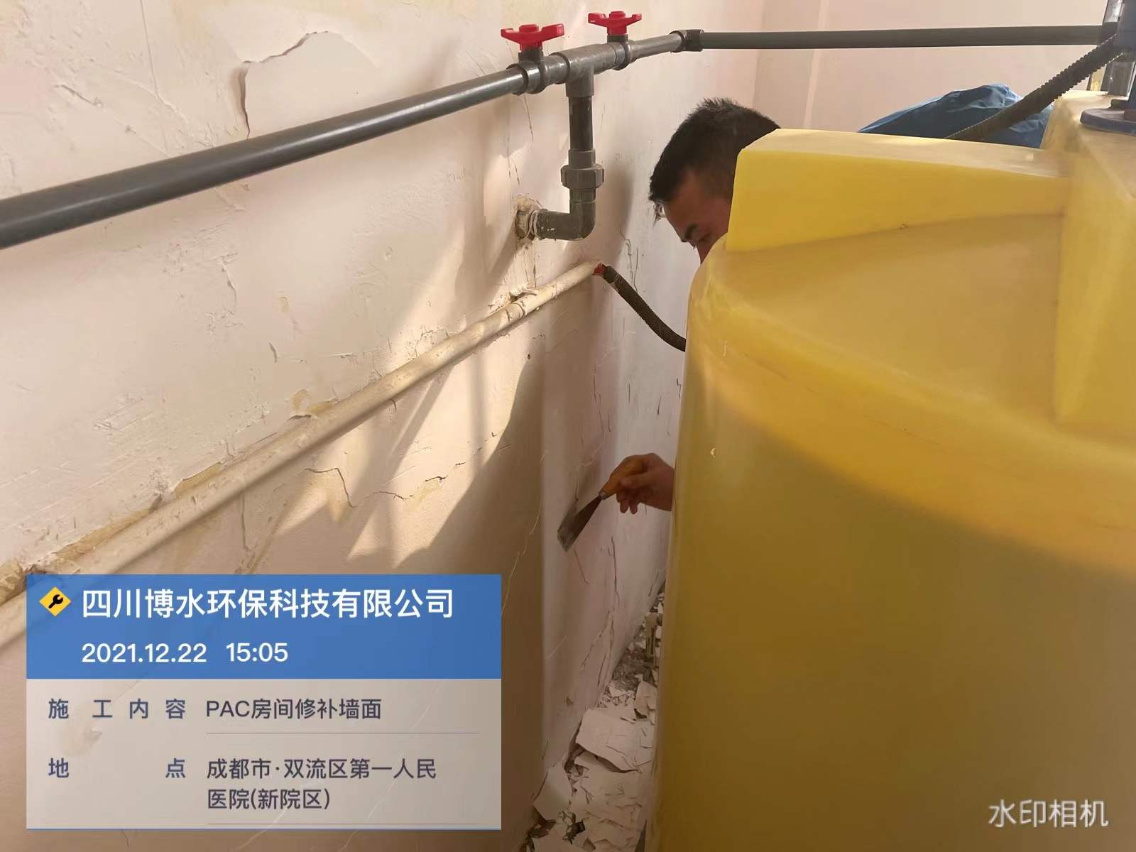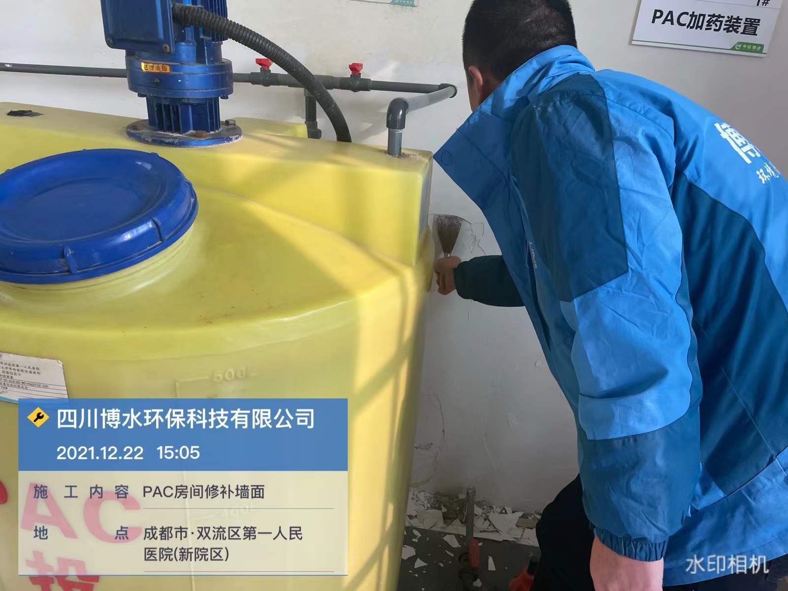 成都雙流第一人民醫(yī)院污水站維保-修補(bǔ)PAC房間墻面-排放泵并清洗