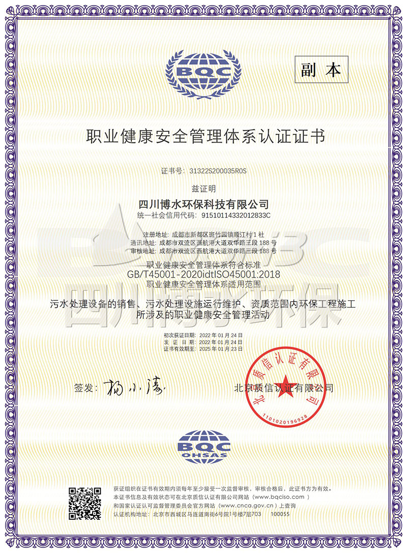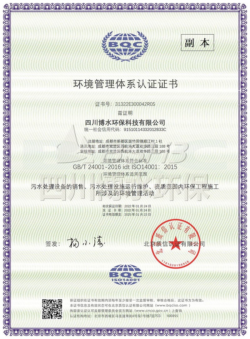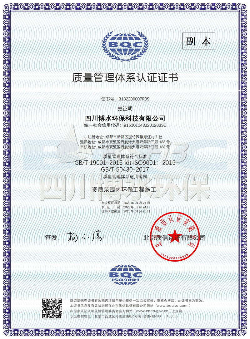 恭喜四川博水環(huán)保再次榮獲多項(xiàng)ISO管理體系認(rèn)證證書(shū)!