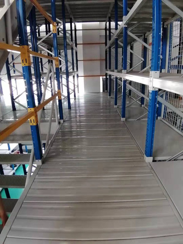 閣樓貨架系統(tǒng),通常利用中型擱板式貨架或重型擱板式貨架作為主體支撐加上樓面板(根據(jù)貨架單元的總負載重量來決定選用何種貨架),樓面板通常選用冷軋型鋼樓板、花紋鋼樓板或鋼格柵樓板。