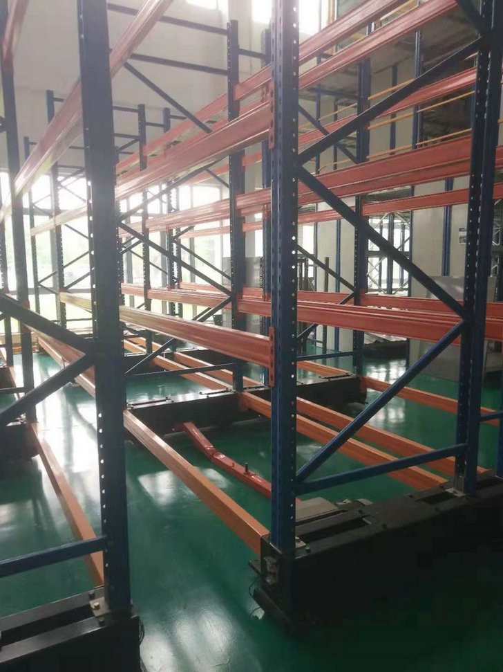 電動(dòng)移動(dòng)式貨架系統(tǒng),是高密度存儲(chǔ)的貨架系統(tǒng)之一。該系統(tǒng)僅需一條通道,空間利用率高。通過電機(jī)驅(qū)動(dòng)承載臺(tái)車,臺(tái)車上放置橫梁式貨架,懸臂貨架等,變頻調(diào)速,貨架從啟動(dòng)到制動(dòng)都較平穩(wěn),安全性得到保證。根據(jù)軌道形式分為有軌式何無軌式兩種結(jié)構(gòu)。